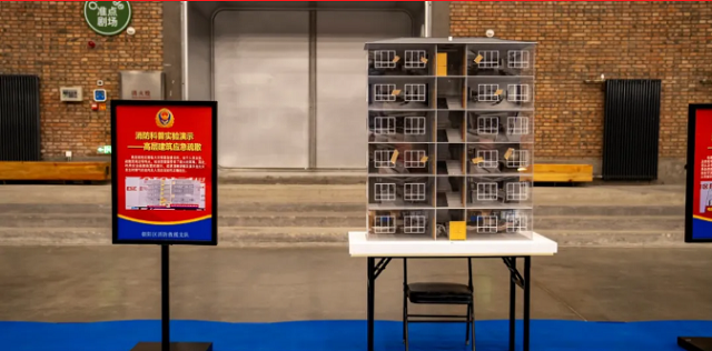 在立体模型演示区,一座微缩版“居民楼”成为焦点。消防员一键启动烟雾模拟装置,白色浓烟瞬间沿楼道窜升至顶层,“烟囱效应”的致命威力直观呈现。“火灾中大多数的遇难者都是因为吸入有毒烟气,因此采取有效防烟隔烟措施,正确选择固守待援还是及时疏散逃生尤为重要!”。