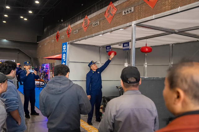 针对电动自行车火灾,活动现场专门搭建了全尺寸车棚实景,让大家观看电池爆燃的恐怖威力,通过真实场景复刻和实战化演练,演示初期火灾的扑救方法和疏散流程,手把手指导市民使用灭火器材扑灭初期火灾。消防员用实验对比展示水基灭火器、干粉灭火器以及用水灭锂电池起火的效果差异,许多市民举起手机全程录像。