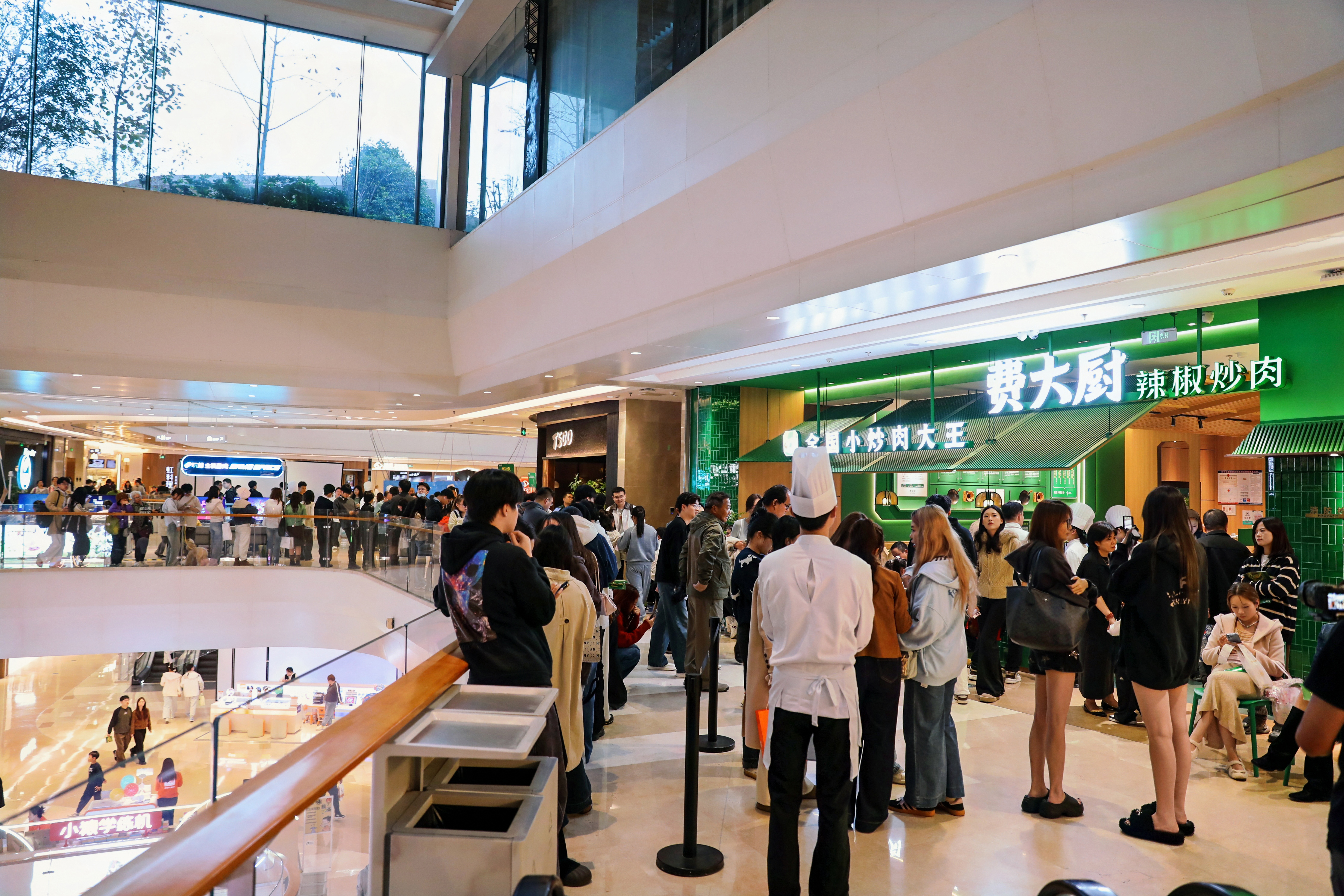 费大厨南京首店的火爆,还创造了一个特殊现象 —— 成为景枫中心商场内唯一需要排队等位的餐饮品牌。开业后的工作日,商场4楼客流较平日激增,其中多数消费者直奔费大厨,而同楼层其他餐饮品牌等位桌数均未超过10桌。