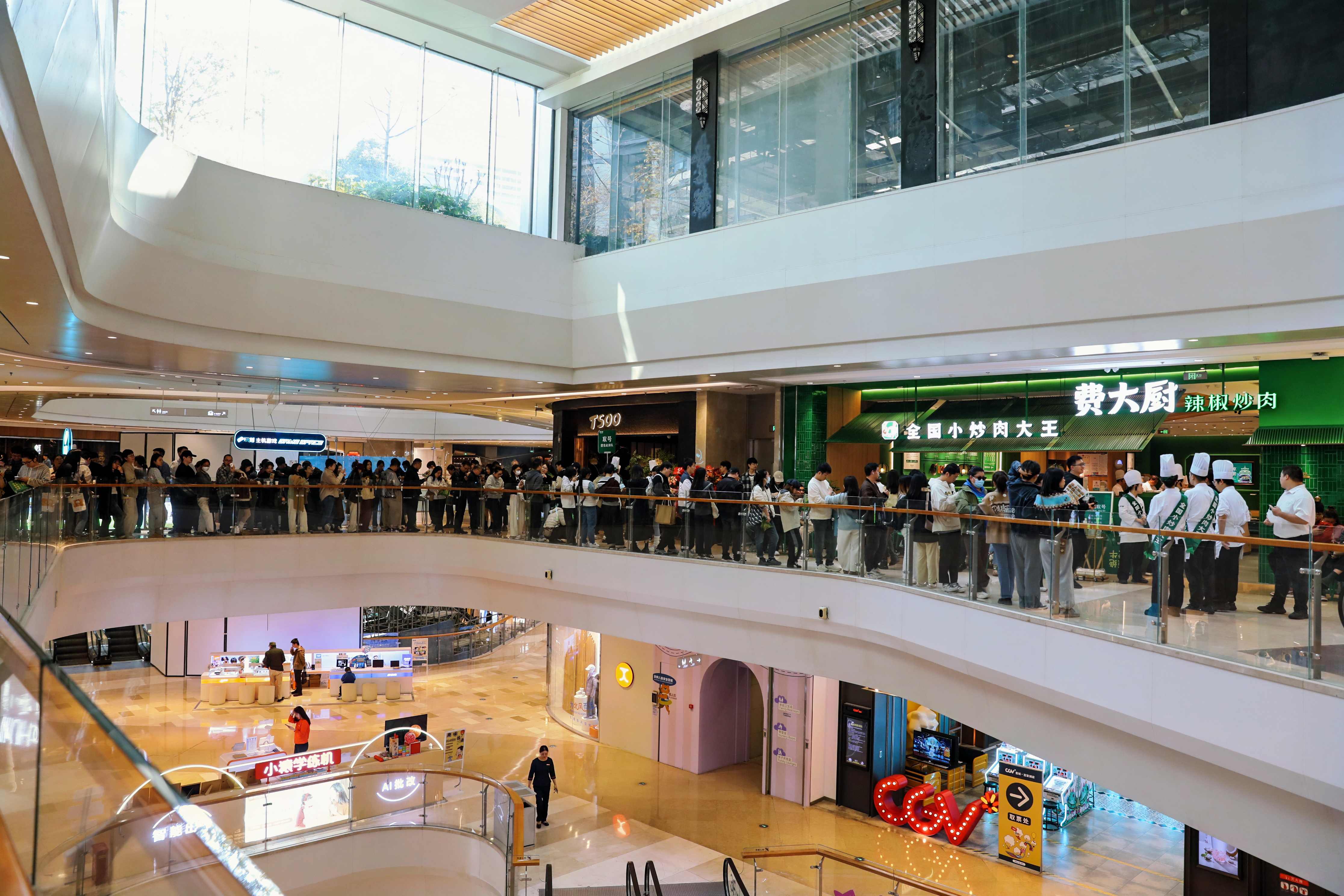 11 月 15 日,费大厨南京首店在江宁区景枫中心正式开业,瞬间点燃南京餐饮市场,上演一场持续多天的现象级排队盛况。上午 10 点商场刚开门,顾客便小跑冲向门店取号,仅 5 分钟,费大厨门口就排起百米长队,与同楼层其他餐饮门店的冷清形成鲜明对比。